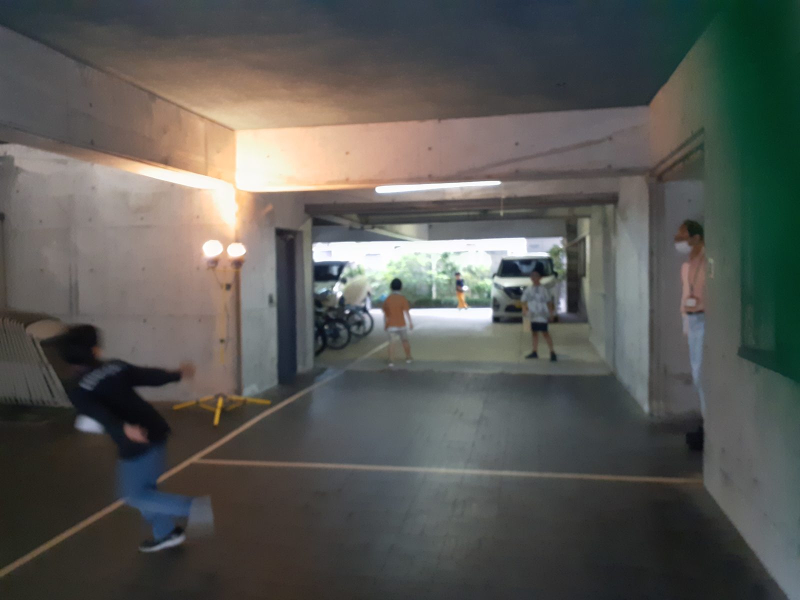 駐車場でボール遊び