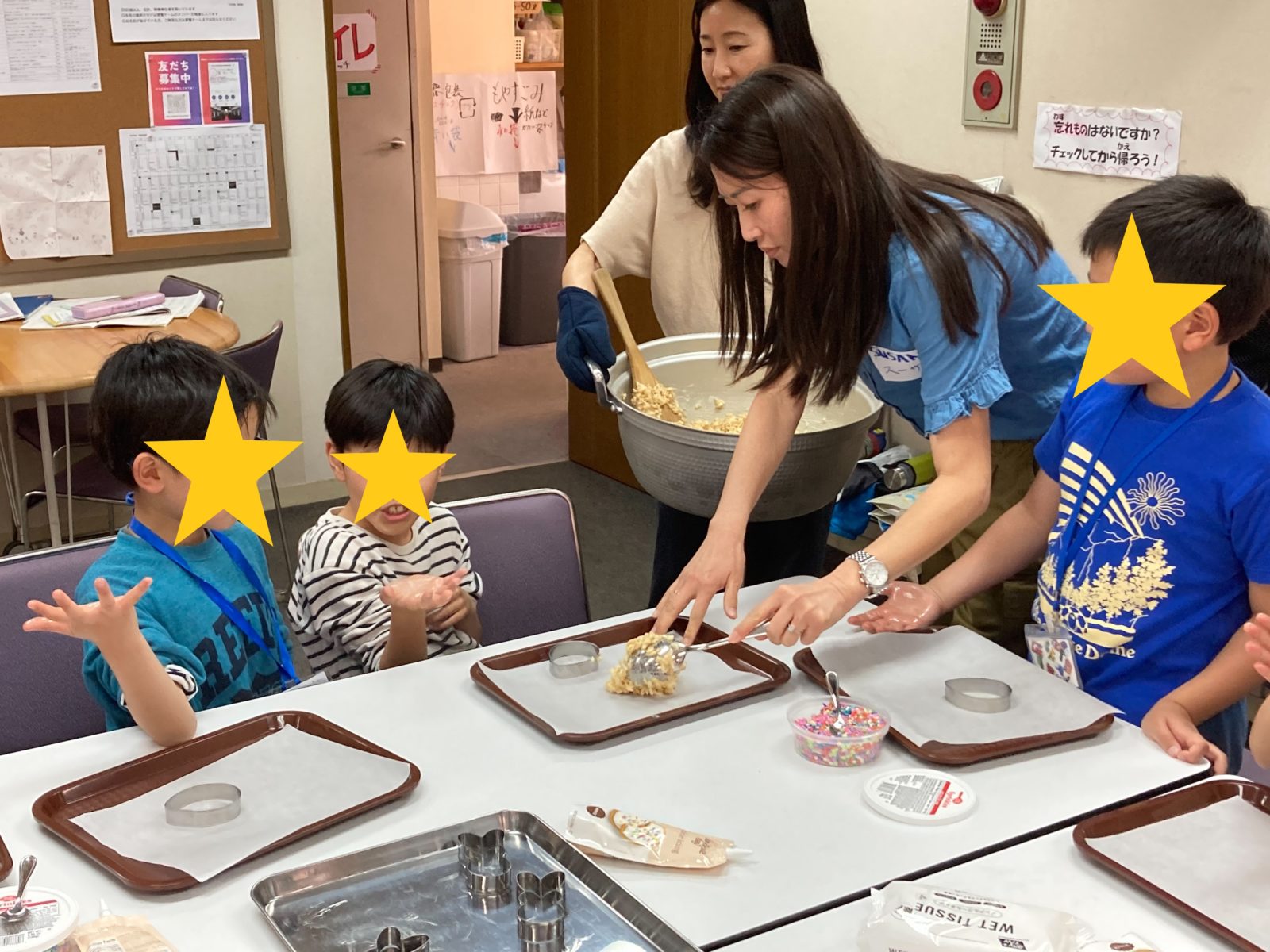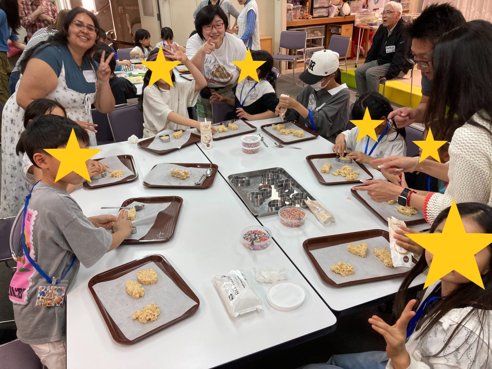 お菓子作りは、ライスシリアルをマシュマロで固めた「ライス クリスピー トリート」を作ったり、クッキーのデコレーションを楽しみました。そのほかも母の日のプレゼントの工作、スパイクボールでみんなで遊び、ゲームなどはそのまま寄贈してくれました。